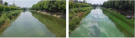治理前水體呈綠色,流速緩慢,無明顯臭味。該河段污染主要來自周圍小區(qū)和商業(yè)區(qū)的生活污水。0ds新型光催化網(wǎng)_水庫治理_河道治理_水生態(tài)修復(fù)_水環(huán)境治理與修復(fù)_江蘇雙良環(huán)境科技有限公司