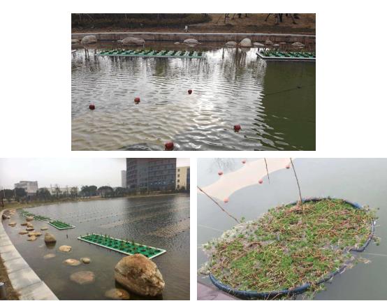 由于湖中生物缺失,種植了總面積為500平方米的植物,選擇了冬季耐寒的水生植物——菖蒲(長(zhǎng)方形,共456平方米)、金魚藻(圓形浮島,共44平方米),來加強(qiáng)氨氮和總磷的降解,從而恢復(fù)整個(gè)湖體的生態(tài)系統(tǒng)。LGe新型光催化網(wǎng)_水庫(kù)治理_河道治理_水生態(tài)修復(fù)_水環(huán)境治理與修復(fù)_江蘇雙良環(huán)境科技有限公司
