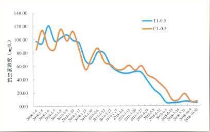 新型光催化技術(shù)對(duì)微污染水體中抗生素降解,有顯著的促進(jìn)作用。(試驗(yàn)池抗生素去除率比空白對(duì)照組高14.4%)