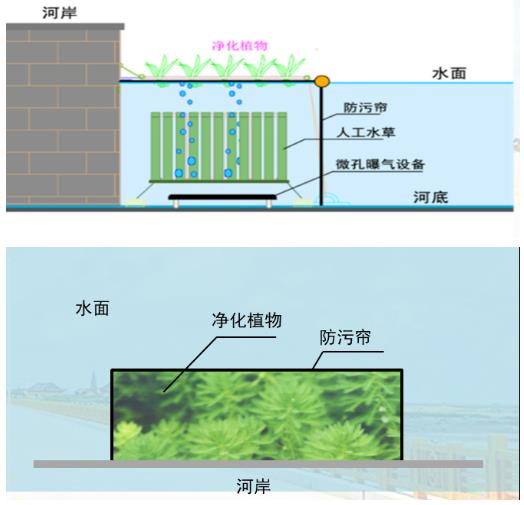 河道底部設(shè)置曝氣系統(tǒng),為立體浮床填料營(yíng)造條件,凈化水質(zhì)。PyQ新型光催化網(wǎng)_水庫(kù)治理_河道治理_水生態(tài)修復(fù)_水環(huán)境治理與修復(fù)_江蘇雙良環(huán)境科技有限公司