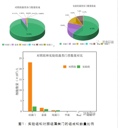 01石墨烯/TiO2功能材料對水體中的藻類和細(xì)菌的總體生物量有顯著的抑制作用,對藻類的生長量產(chǎn)生了86.4%的抑制,從藻種門類分析可見,藻類多樣性卻顯著增加了;對細(xì)菌的生長產(chǎn)生了近95%的抑制作用。