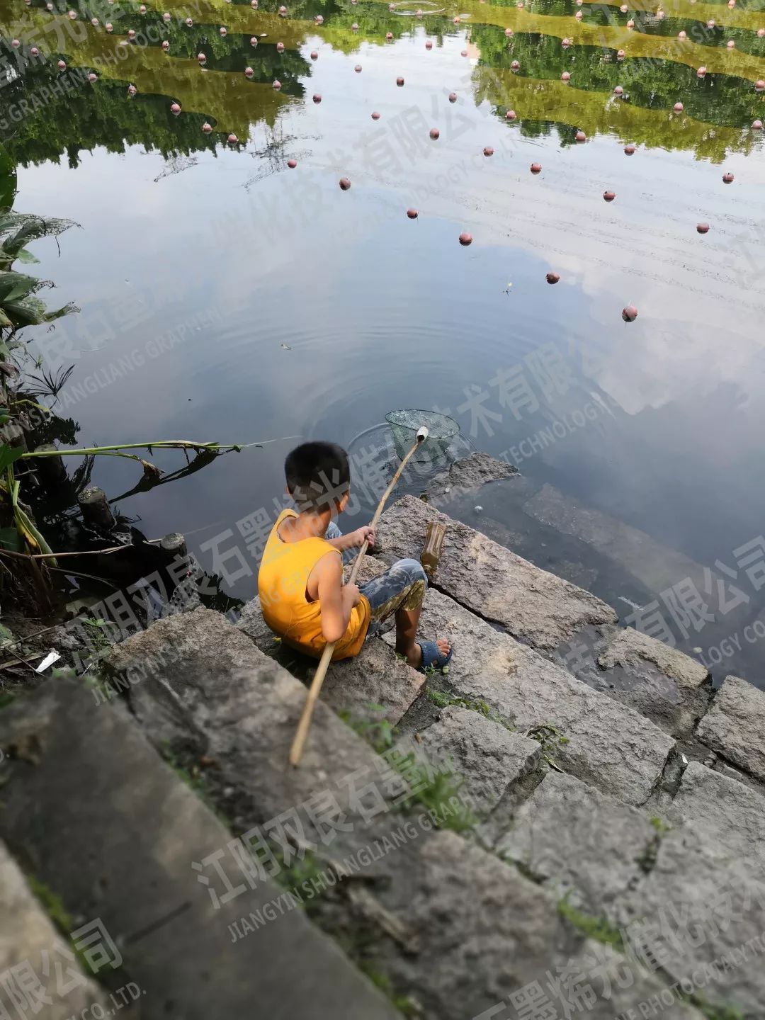 ▲近岸水域已清澈到可見(jiàn)底部沙石,不少兒童在池塘邊捕魚(yú)捕蝦。YQj新型光催化網(wǎng)_水庫(kù)治理_河道治理_水生態(tài)修復(fù)_水環(huán)境治理與修復(fù)_江蘇雙良環(huán)境科技有限公司