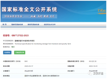 04《畜禽養(yǎng)殖污水監(jiān)測(cè)技術(shù)規(guī)范》(GB/T27522-2023)
