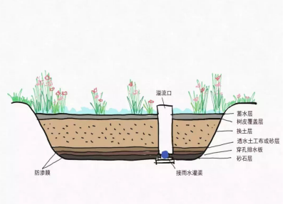 下沉式綠地主要適用于建筑、道路及停車(chē)場(chǎng)的周邊綠地,以及城市綠化帶等綠地內(nèi),用于匯集地表徑流,凈化初期雨水。iS6新型光催化網(wǎng)_水庫(kù)治理_河道治理_水生態(tài)修復(fù)_水環(huán)境治理與修復(fù)_江蘇雙良環(huán)境科技有限公司