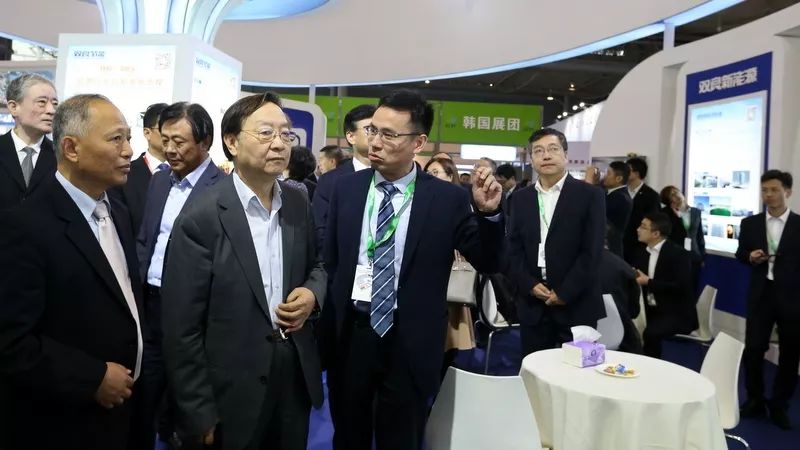 工業(yè)和信息化部原部長李毅中和與會嘉賓一起參觀雙良展臺,了解雙良節(jié)能環(huán)保新技術(shù)。6Hf新型光催化網(wǎng)_水庫治理_河道治理_水生態(tài)修復(fù)_水環(huán)境治理與修復(fù)_江蘇雙良環(huán)境科技有限公司