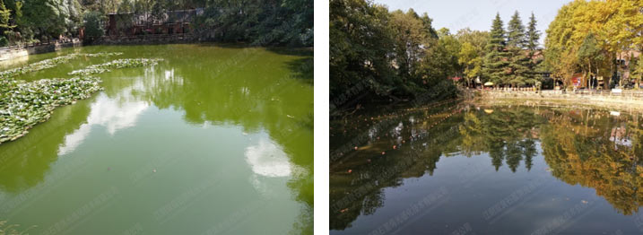 經(jīng)過(guò)40余天的治理,變化如下:D6t新型光催化網(wǎng)_水庫(kù)治理_河道治理_水生態(tài)修復(fù)_水環(huán)境治理與修復(fù)_江蘇雙良環(huán)境科技有限公司