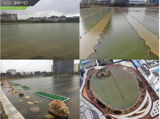 項(xiàng)目概述:高潮湖位于南昌市工業(yè)園區(qū)內(nèi),金鷹路以北,航空路以西,是一個(gè)封閉型景觀湖,呈圓形。周邊為硬質(zhì)岸坡,湖岸上四周為景觀綠化帶。湖岸以內(nèi)約4m范圍為淺灘,用堆石固定。湖底由外到內(nèi)逐漸加深,水深約1.5-2m。由于前期高潮湖已徹底改造,湖中無任何水生動(dòng)植物,水中生態(tài)基本被破壞,水體失去自凈能力,水體較渾濁。80T新型光催化網(wǎng)_水庫治理_河道治理_水生態(tài)修復(fù)_水環(huán)境治理與修復(fù)_江蘇雙良環(huán)境科技有限公司