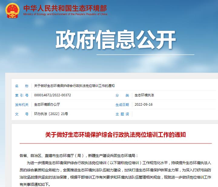 04關(guān)于做好生態(tài)環(huán)境保護(hù)綜合行政執(zhí)法崗位培訓(xùn)工作的通知