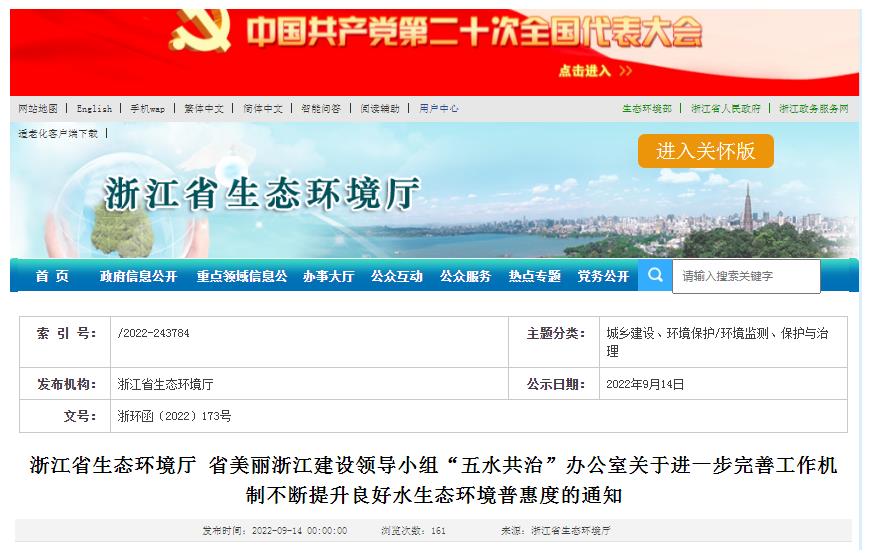 07浙江省生態(tài)環(huán)境廳省美麗浙江建設(shè)領(lǐng)導(dǎo)小組“五水共治”辦公室關(guān)于進(jìn)一步完善工作機(jī)制不斷提升良好水生態(tài)環(huán)境普惠度的通知