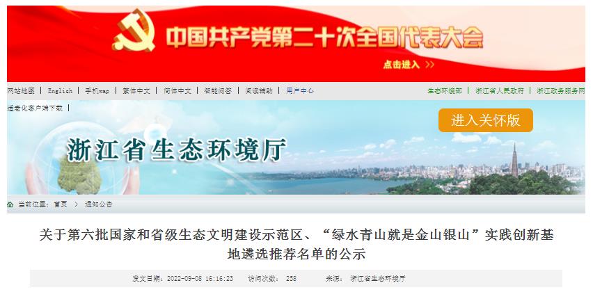 05關(guān)于第六批國家和省級(jí)生態(tài)文明建設(shè)示范區(qū)、“綠水青山就是金山銀山”實(shí)踐創(chuàng)新基地遴選推薦名單的公示