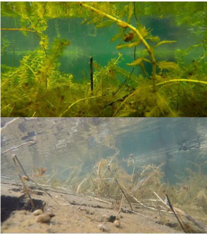 ▲治理區(qū)自然生長的狐尾藻、蘿卜螺Dxk新型光催化網(wǎng)_水庫治理_河道治理_水生態(tài)修復(fù)_水環(huán)境治理與修復(fù)_江蘇雙良環(huán)境科技有限公司