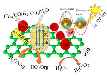 2進(jìn)行水氧化反應(yīng),表現(xiàn)出不同尋常的兩步雙電子方式。這種特殊的光活性是由于rGO和Au修飾的表面等離子體效應(yīng)促進(jìn)電荷分離和雙電子水氧化的雙重作用。我們的工作為低成本、高效率的光催化水分解和二氧化碳減排應(yīng)用提供方向。(陳斌譯)