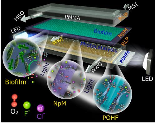 Kfm新型光催化網(wǎng)_水庫(kù)治理_河道治理_水生態(tài)修復(fù)_水環(huán)境治理與修復(fù)_江蘇雙良環(huán)境科技有限公司縮寫(xiě)詞:NpM,核膜孔;MSI,微生物溶液入口;MSO,微生物溶液出口;PMMA,聚甲基丙烯酸甲酯;RUP,反應(yīng)器上板;RLP,反應(yīng)器下板;LED,發(fā)光二極管;WwI,廢水入口;WwO,廢水排放口;POHF,光催化中空光纖