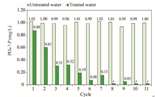 43-P/L·d。在滴濾反應(yīng)器上生長(zhǎng)起來的氧化氫細(xì)菌生物量是由含1.25 %磷的干物質(zhì)上組成,這說明正磷酸鹽的去除原理是以氧化氫細(xì)菌生長(zhǎng)為基礎(chǔ)的。用未經(jīng)處理和處理的水進(jìn)行藍(lán)藻生長(zhǎng)實(shí)驗(yàn),結(jié)果表明集胞藻只能在未經(jīng)處理的水中生長(zhǎng)。處理后的水,正磷酸鹽平均殘余值為0.008 mg/L。在這個(gè)試驗(yàn)研究證明,氧化氫細(xì)菌能夠?qū)⑺械恼姿猁}去除到阻止藍(lán)藻生長(zhǎng)的濃度。