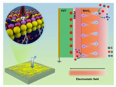 [2]. NANO-MICRO LETTERS光催化系統(tǒng)中光載流子的復(fù)合損耗直接決定了光催化劑的能量轉(zhuǎn)換效率。在這項(xiàng)工作中,靜電場(chǎng)通過分離空間中的光空穴和光電子來抑制光催化劑中光載流子的復(fù)合。作為模型結(jié)構(gòu),在壓電換能器(PZT)的PDMS絕緣壓電基片上生長(zhǎng)了暴露(010)晶面的BiVO