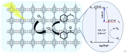 2) 的重要光敏劑。然而,卟啉衍生物仍然表現(xiàn)出低效率和難以回收的特性。 在這項研究中,合成了一種基于 Ag 的 MOFs(AgTPyP;TPyP,5,10,15,20-四(4-吡啶基)卟啉)。與配體TPyP相比,AgTPyP在硫化物光催化選擇性氧化成亞硫酰氯過程中表現(xiàn)出近100%的轉化率和選擇性,并且在可見光下具有明顯的光動力效果。綜合表征表明,