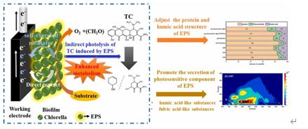 9Zm新型光催化網(wǎng)_水庫治理_河道治理_水生態(tài)修復_水環(huán)境治理與修復_江蘇雙良環(huán)境科技有限公司圖5 電刺激和抗生素誘導聯(lián)合產生微藻源光敏劑增強TC光解的圖式機制