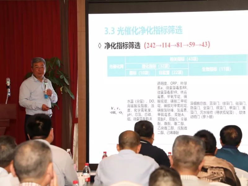 南方國家工程中心主任、上海城市水資源開發(fā)利用國家工程中心有限公司總經(jīng)理顧玉亮對(duì)光催化技術(shù)提升飲用水源地水質(zhì)工程實(shí)證應(yīng)用情況的介紹。