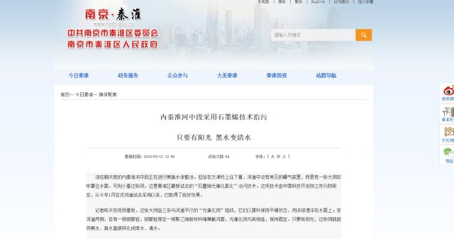 南京日報(bào)一篇名為“內(nèi)秦淮河中段采用石墨烯技術(shù)治污——只要有陽光 黑水變清水”的新聞報(bào)道引起了讀者們的興趣。2gk新型光催化網(wǎng)_水庫治理_河道治理_水生態(tài)修復(fù)_水環(huán)境治理與修復(fù)_江蘇雙良環(huán)境科技有限公司