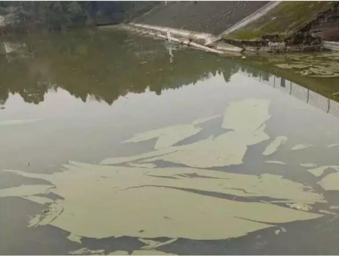 治理前水庫取水點局部水面出現(xiàn)大量藻類,水體發(fā)綠,透明度僅為40cm,感官較差。 SgE新型光催化網(wǎng)_水庫治理_河道治理_水生態(tài)修復_水環(huán)境治理與修復_江蘇雙良環(huán)境科技有限公司